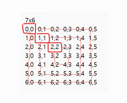 만약 7x6 배열이라면 다음과 같이 (0,0) (1,1) (2,2) 좌표가 앵커가 된다.