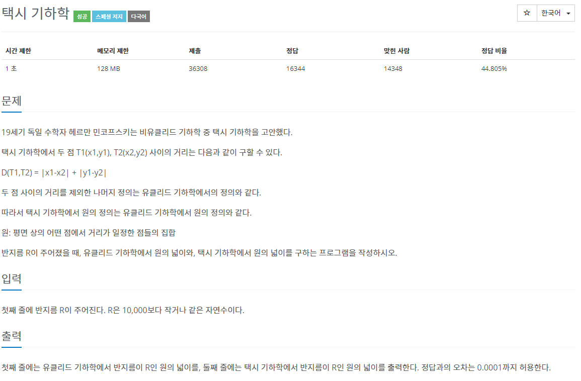 이 문제는 택시 기하학이 먼지를 모르면 풀 수 가 없다. 나도 몰라서 인터넷에서 검색해보았다.